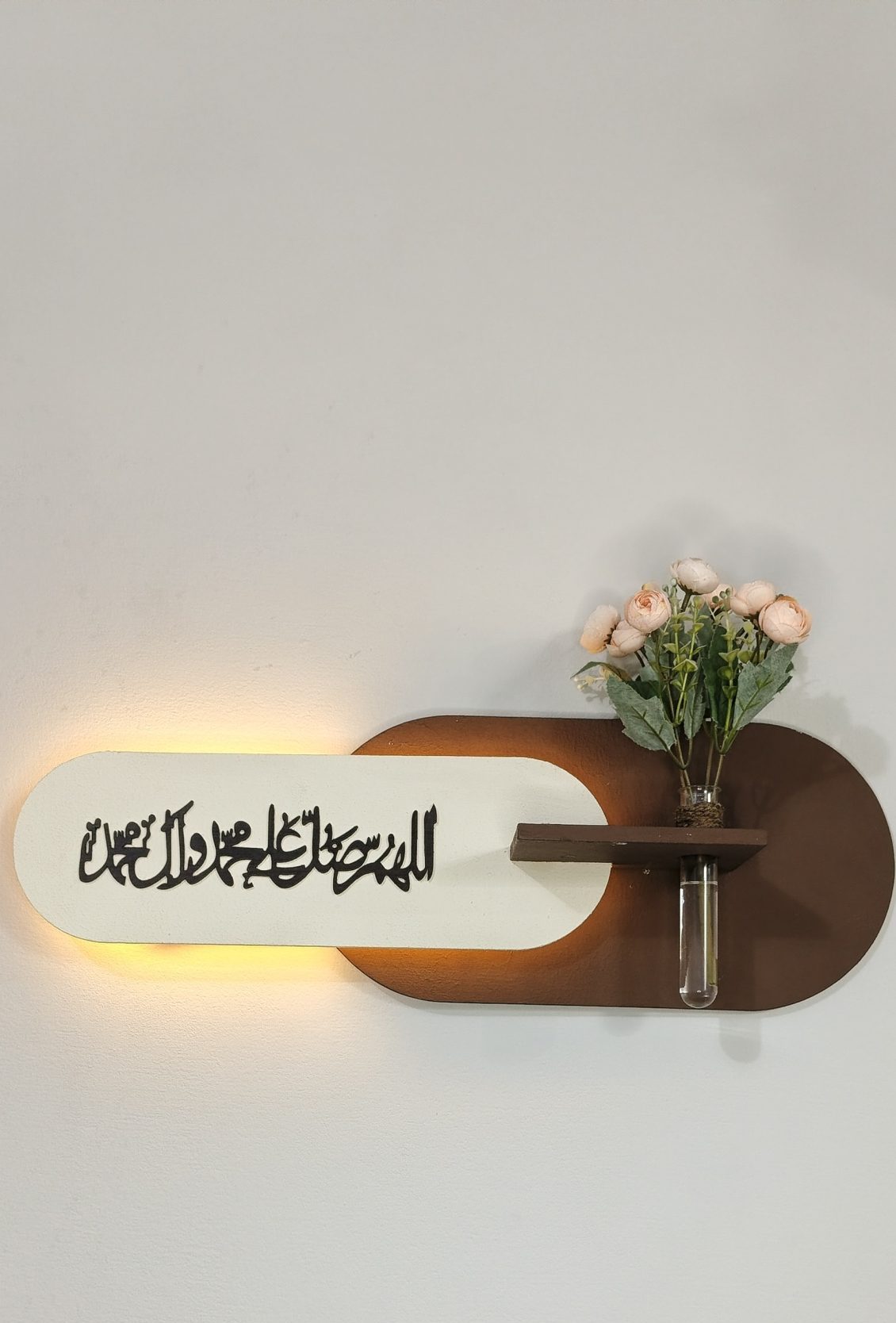 Bring a touch of modern sophistication to your space with this custom Contemporary LED Wall Decor. Featuring a unique textured sandstone finish, remote-controlled LED lighting, and an elegant built-in glass vase holder, it creates a warm, stylish, and inviting ambiance.