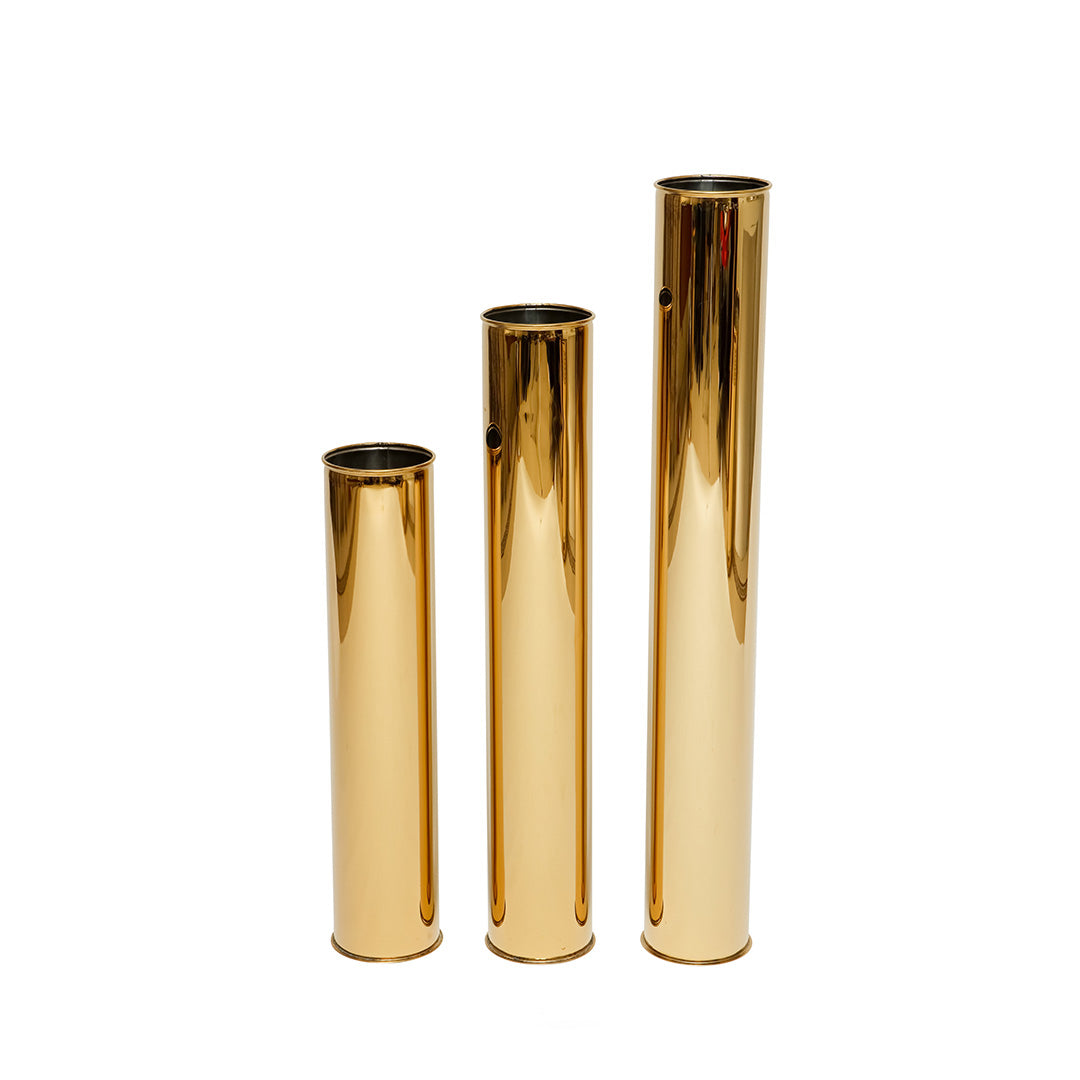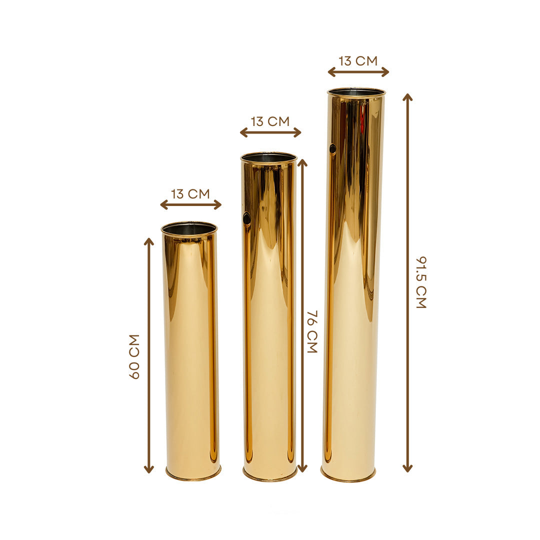 Set of 3 gold-plated stainless-steel planters – elegant mirror-finish vases for luxurious indoor decor.