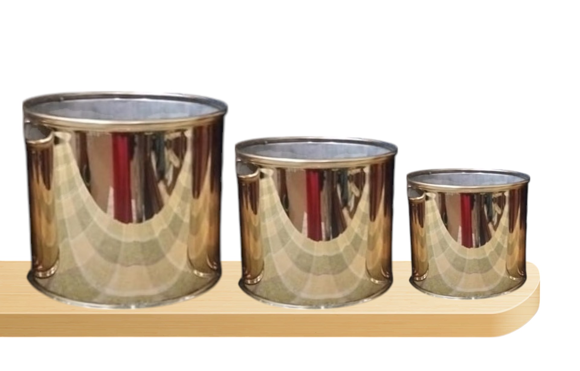 Set of 3 gold-plated stainless-steel planters – elegant mirror-finish vases for luxurious indoor decor.