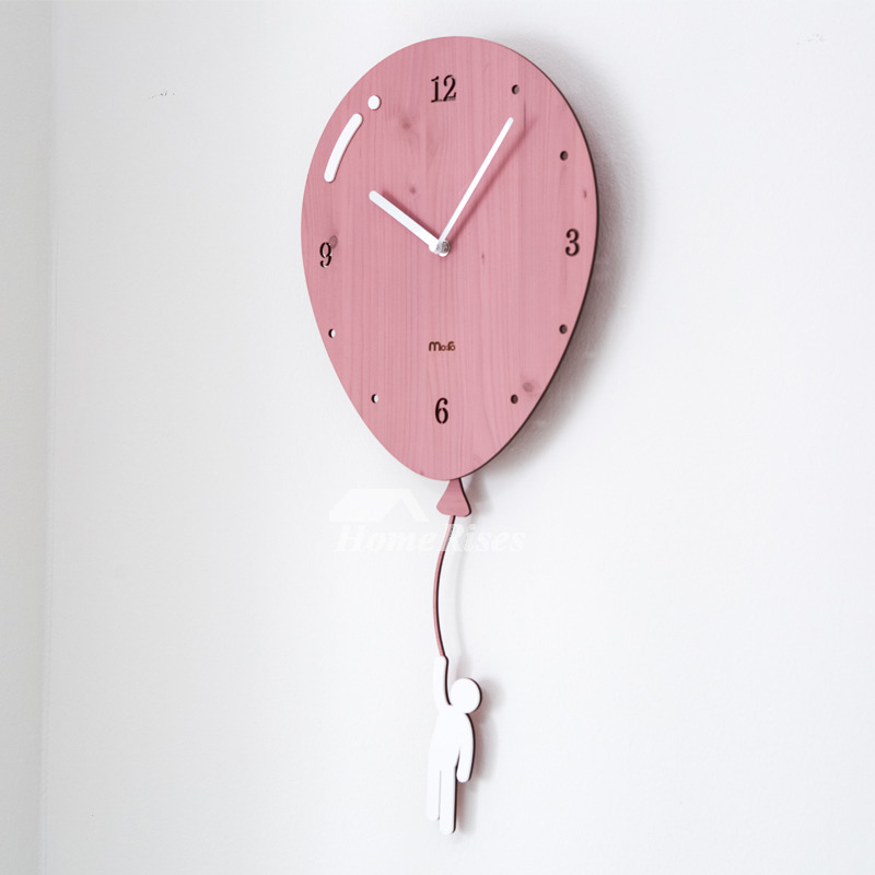 Kids Balloon Shaped Wooden Pendulum Wall Clock