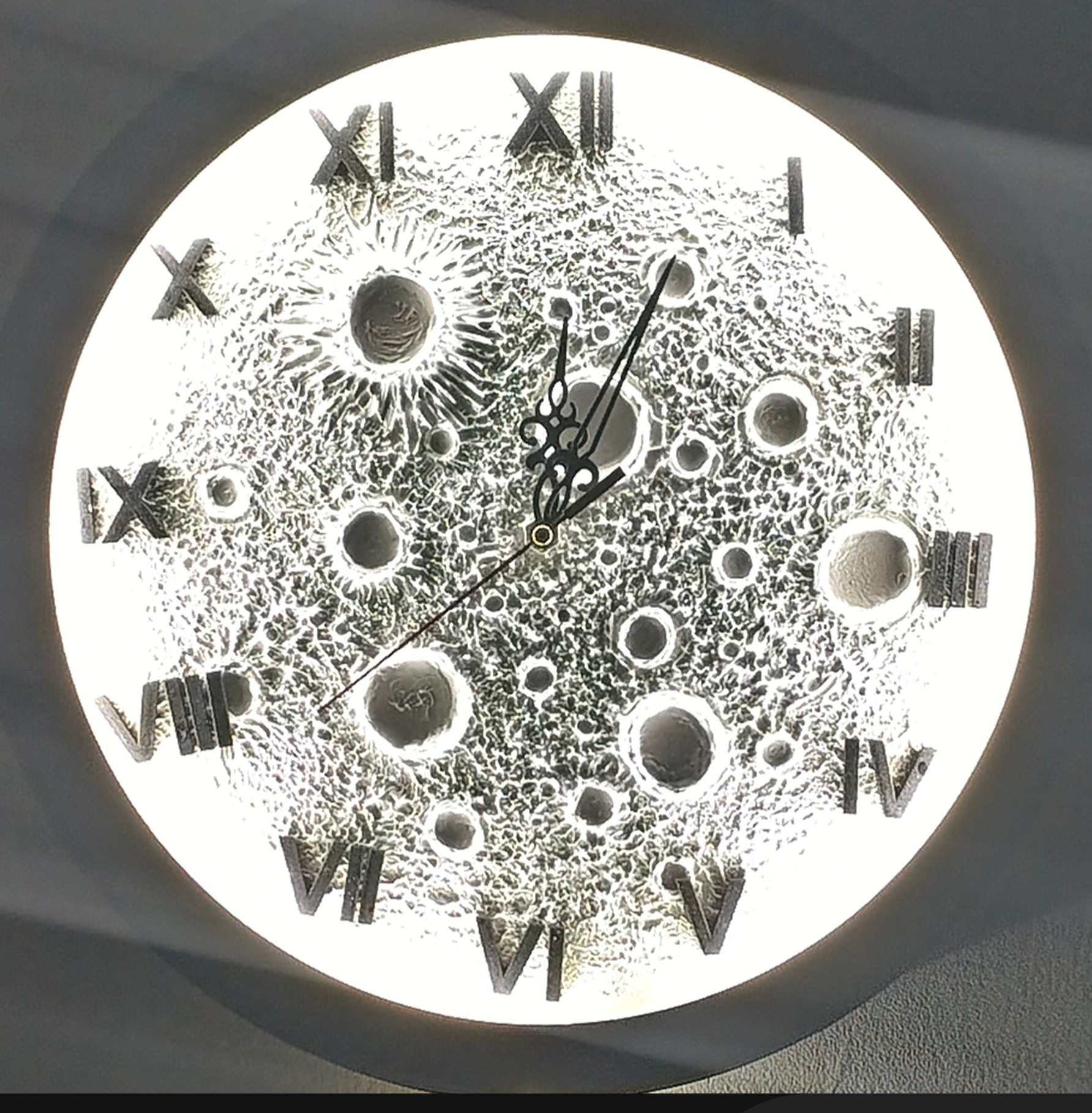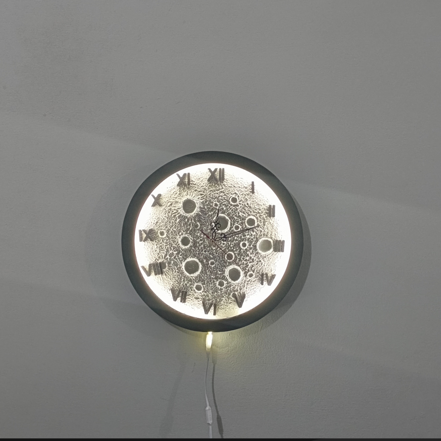 Handmade 3D Textured Moon Clock (LED wall décor clock)