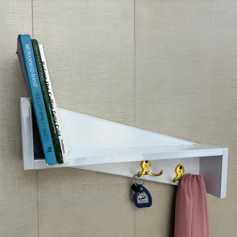 Bring order and elegance to your space with this Multipurpose Floating Shelf with Key Hanger, designed for everyday convenience and modern appeal. Crafted from durable MDF laminated sheet, this sleek wall-mounted unit helps you keep keys, mail, and small essentials organized—perfect for entryways, hallways, living rooms, or even office spaces.