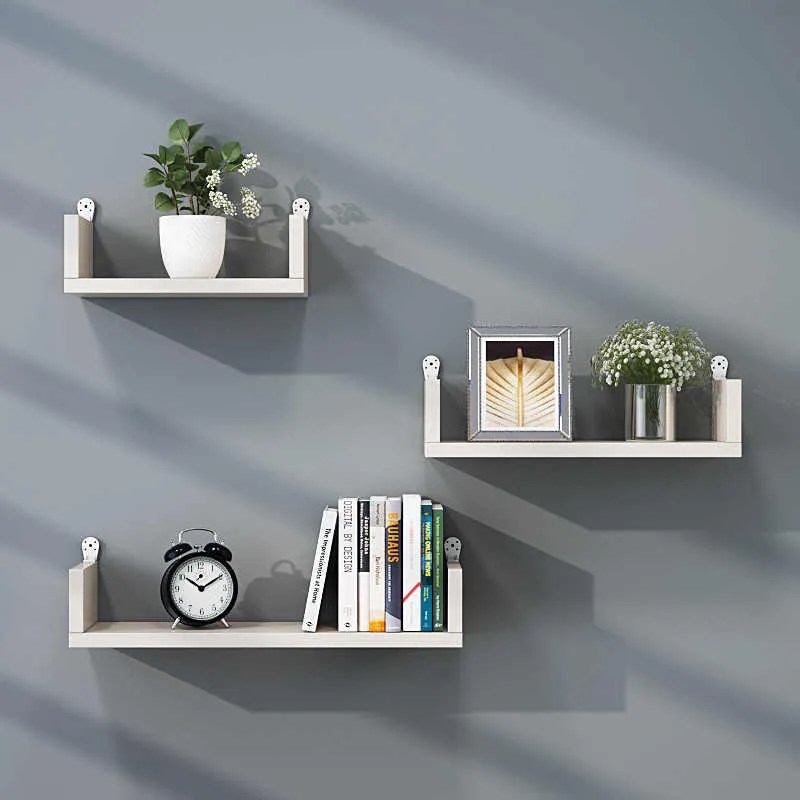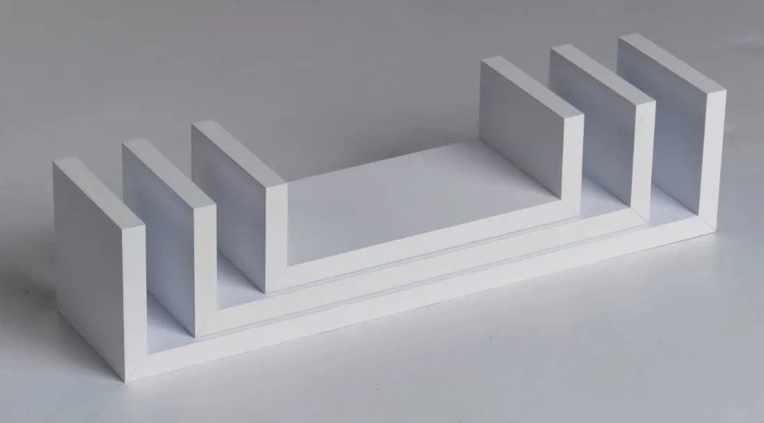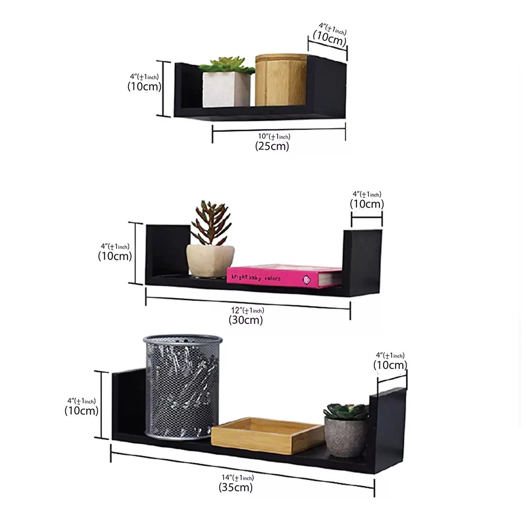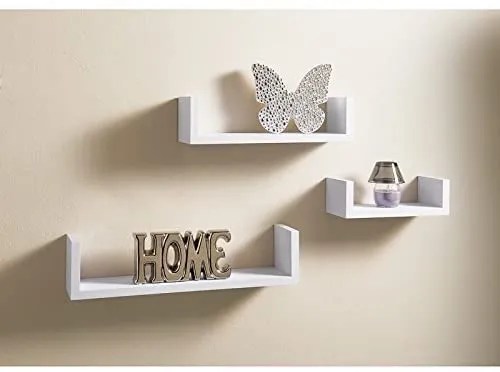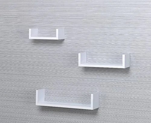 • Add a modern touch to your space with this set of 3 U-shaped floating wall shelves. Perfect for displaying décor pieces, plants, books, or daily essentials. Crafted from durable MDF laminated sheets and easy to install.